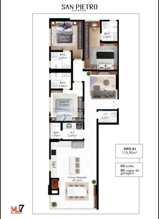 03 Suítes com 116 m² privativos