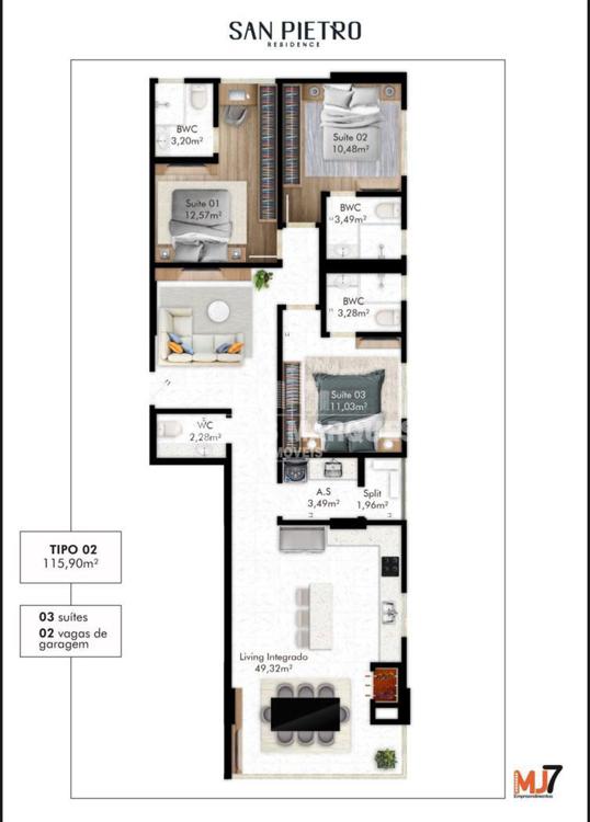 02 Suítes com 86 m² privativos
