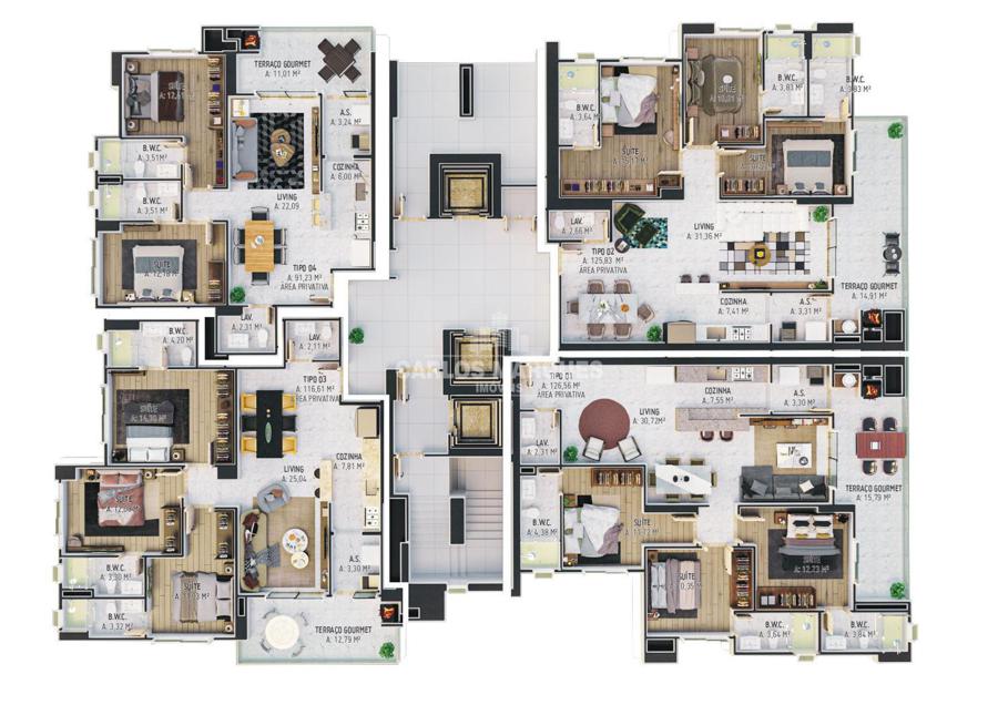 Piso retificado FULL HD, que imita madeira, nas suítes
